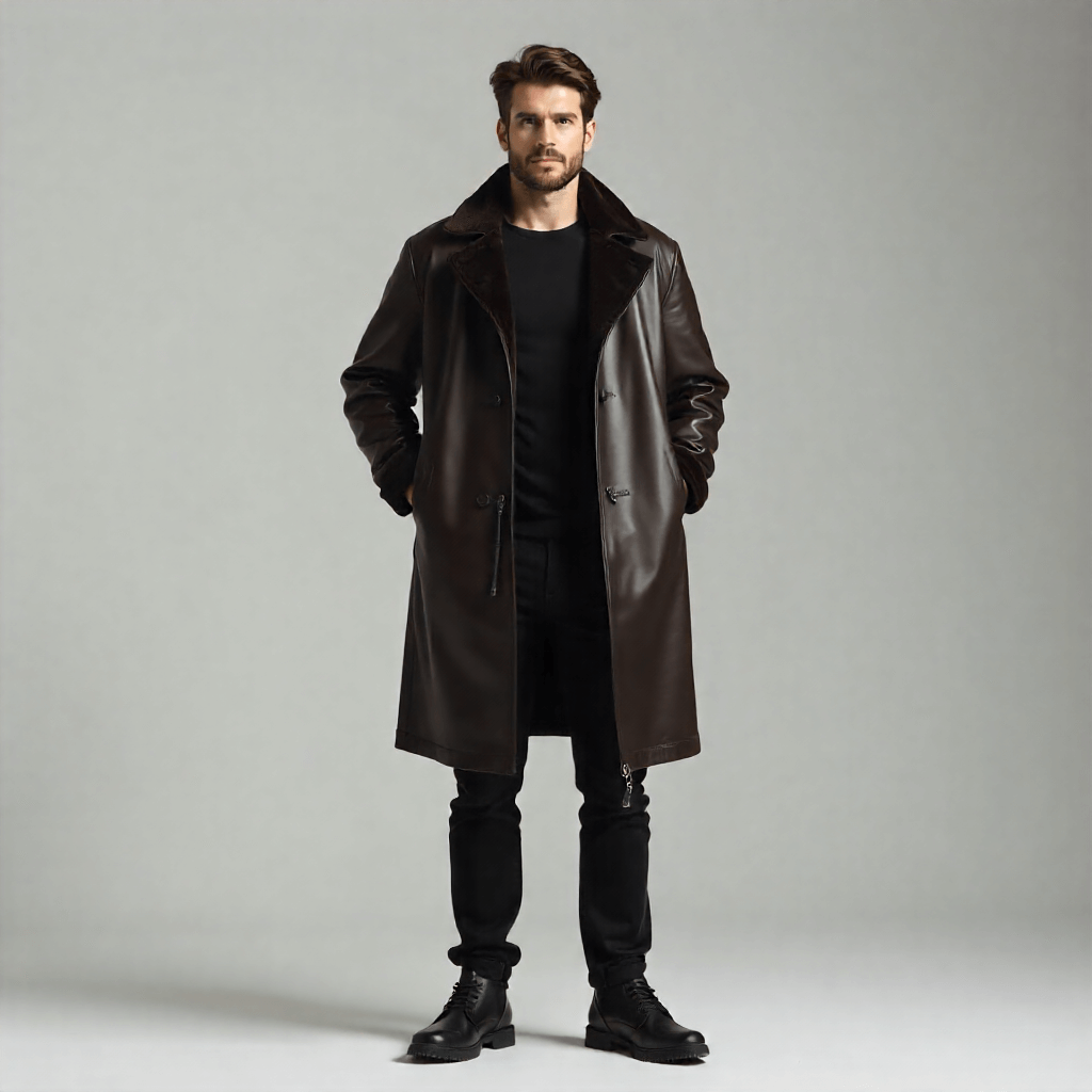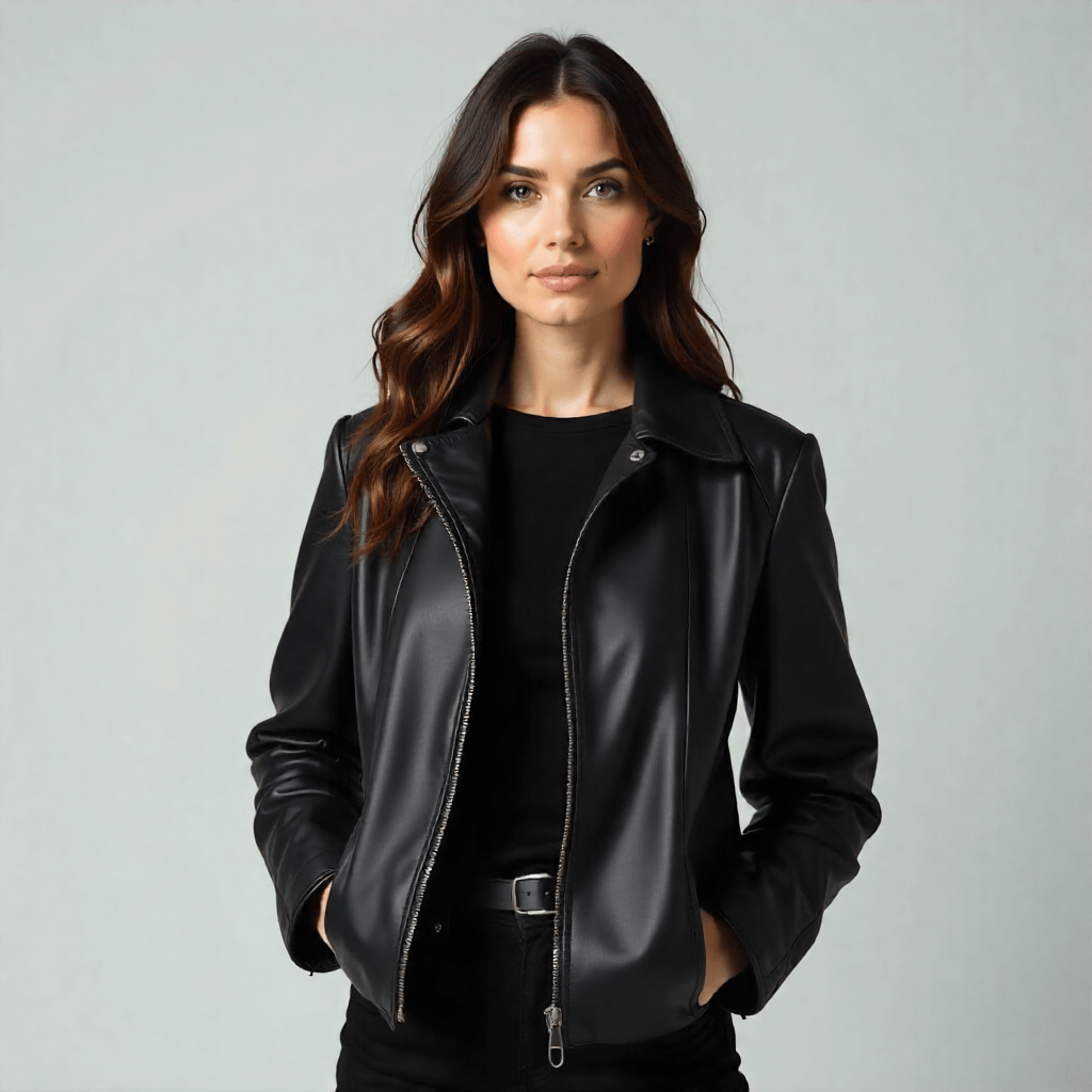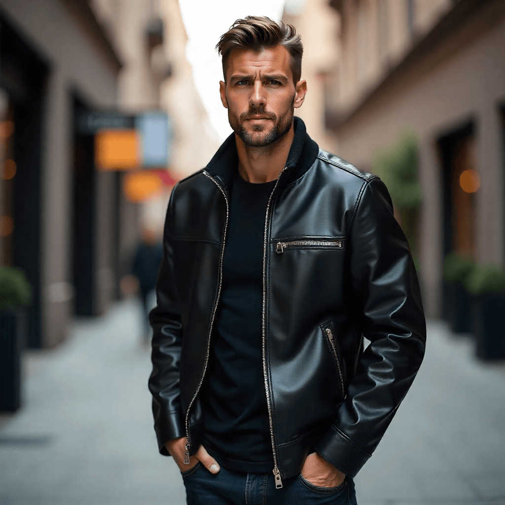 Men’s Black Cafe Racer Leather Jacket with Removable Hood